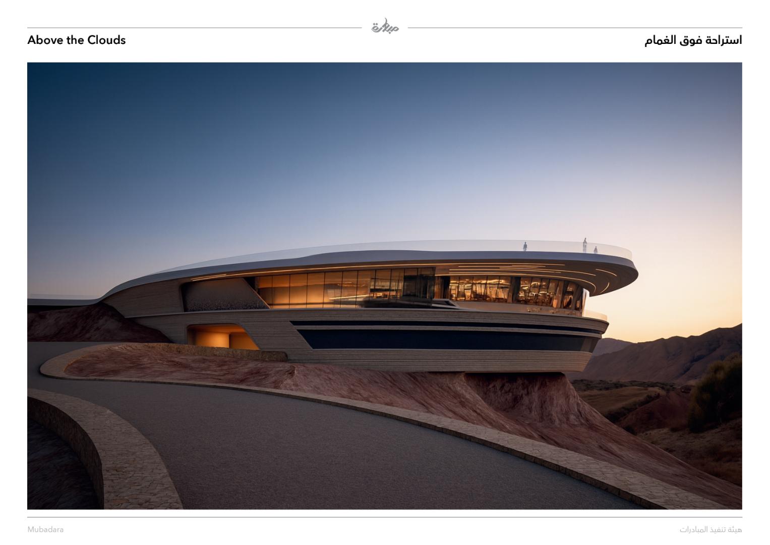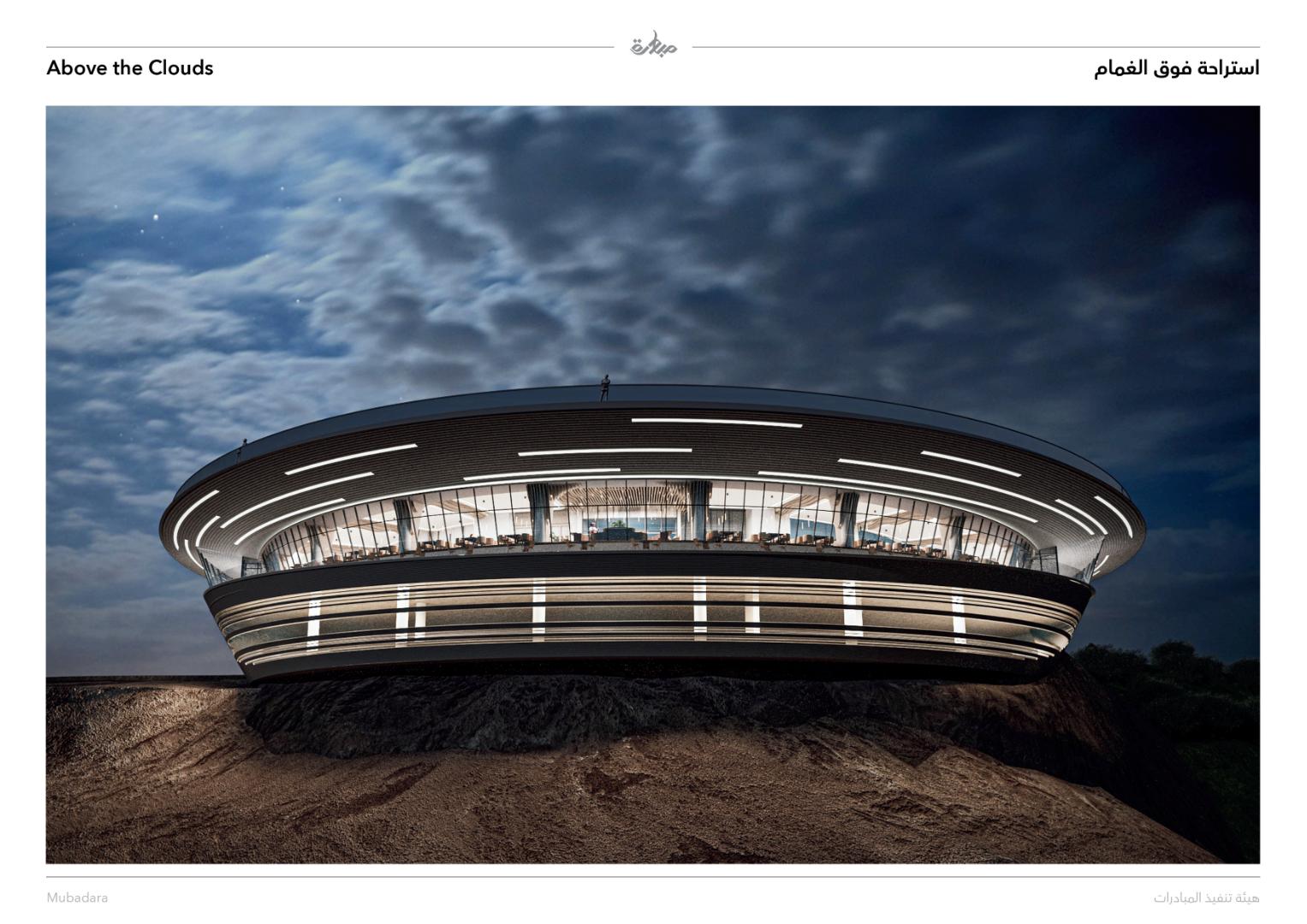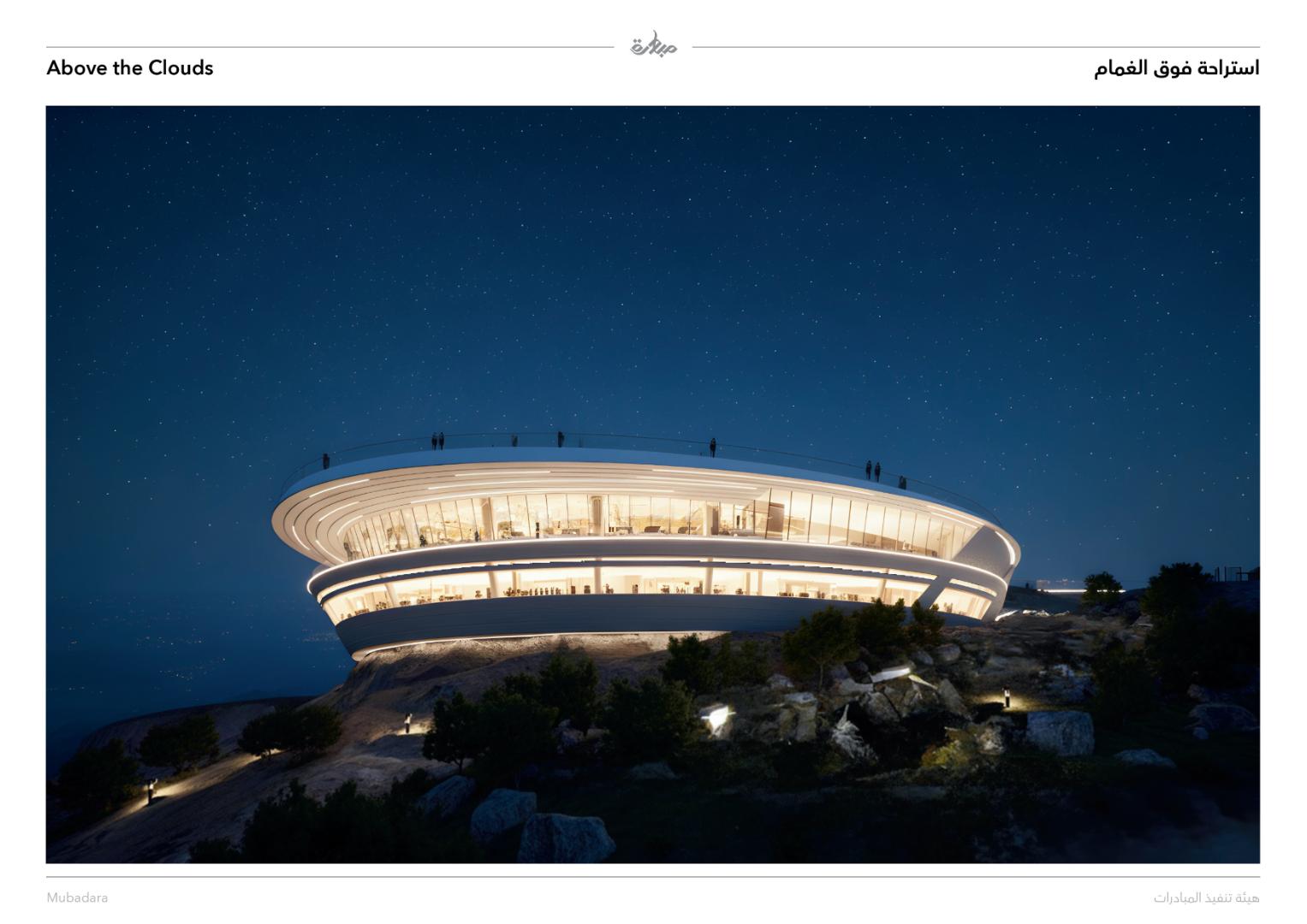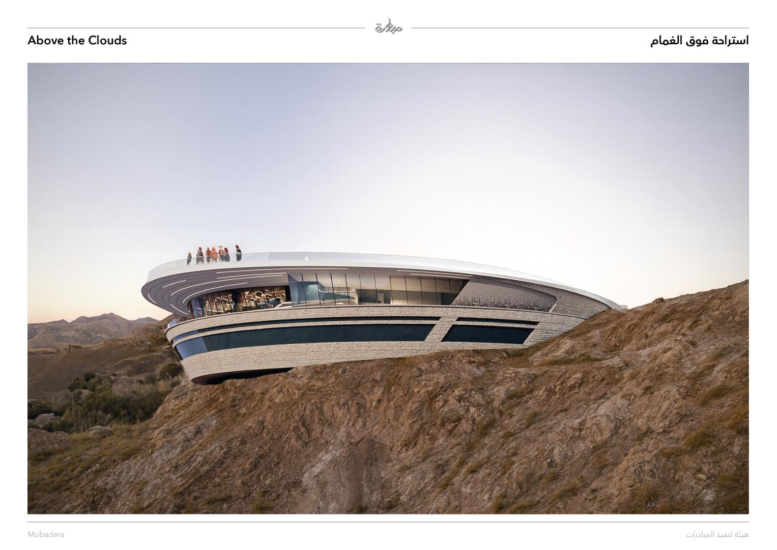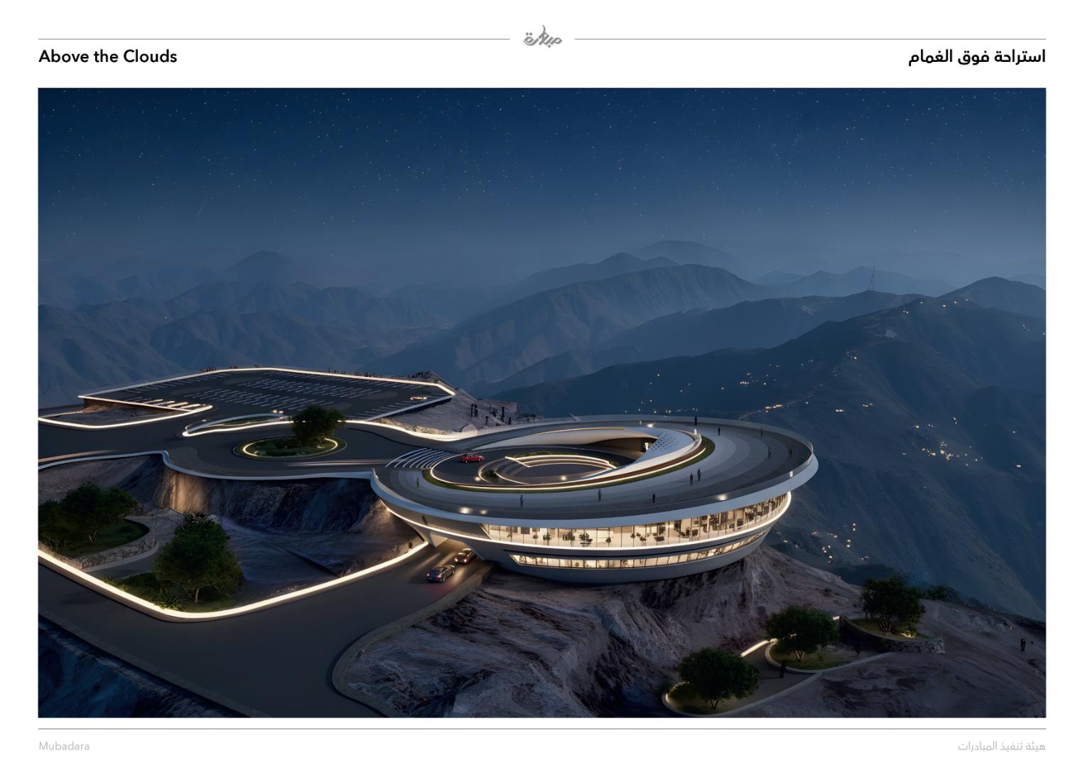 تقع استراحة جبل ديم في موقع خلاب، على قمة أحد جبال مدينة كلباء المواجهة للشاطئ وتعد تجسيدًا رائعًا لكيف يمكن للهندسة المعمارية الحديثة أن تندمج مع الطبيعة بأقل قدر من التأثير على الموقع، مع الاستفادة القصوى من كل ما يقدمه المكان. عند النظر لأول مرة، ستبدو البنية كأنها طابق واحد على شكل قرص، تخدم كمنطقة للمطعم والقراءة مع إطلالة بزاوية 360 درجة على الجبل. ولكن في الأسفل، في الطابق السفلي، هناك العديد من المرافق الأخرى مثل قاعة متعددة الاستخدامات وومصلى والمطبخ الرئيسي والخدمات الكهروميكانيكية ومرافق داعمة وغيرها. أما في الأعلى، على أسطح المبنى المائل فتوجد منصة للمشاهدة ليستمتع الزوار بالمشهد الطبيعي مع توفير مساحة لمسرح مفتوح، مما يضفي قيمة كبيرة على المكان بأكمله.