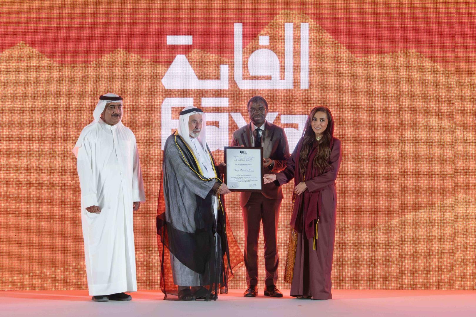 وتناول مدير مركز التراث العالمي في اليونسكو أهمية اتفاقية التراث العالمية وما تمثله، قائلاً // تُعدّ اتفاقية التراث العالمي معاهدة دولية فريدة وآلية بارزة تجمعنا معًا على القيم المشتركة، للعمل بصورة جماعية من أجل صون تراثنا المشترك للأجيال المقبلة، ويمثّل موقع "الفاية" الموقع الثاني في دولة الإمارات العربية المتحدة الذي يُدرج على قائمة التراث العالمي، بعد إدراج "المواقع الثقافية في العين (حفيت، هيلي، بدع بنت سعود ومناطق الواحات)" عام 2011، ويجسّد هذا الإدراج غِنى وتنوّع تراث الدولة، بما يحمله من قيم ثقافية وطبيعية راسخة //.