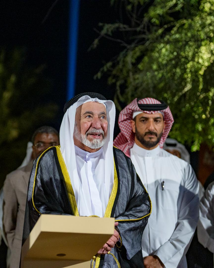 وتحدث صاحب السمو حاكم الشارقة عن جهود إمارة الشارقة في دعم المشاريع الثقافية، قائلاً // من هنا، يحتل التراث موقعاً مركزياً في المشروع الثقافي لإمارة الشارقة، لأن التراث يمنح الثقافة جذورها التي تستند إليها، وكذلك يضعها في السياق الذي تتشكل من خلاله الصورة المتكاملة للإنسان والمجتمعات في هذه المنطقة، يكشف البحث التاريخي في الفاية تاريخ الإنسان، وهو يتعلم معنى الجماعة، ويؤسس للتعاون، ويُنظّم العمل، ويقسم الموارد، وهذه المقومات كلها تُشكّل الركائز الأساسية للبنية الاجتماعية التي امتد أثرها إلى العصور اللاحقة //.