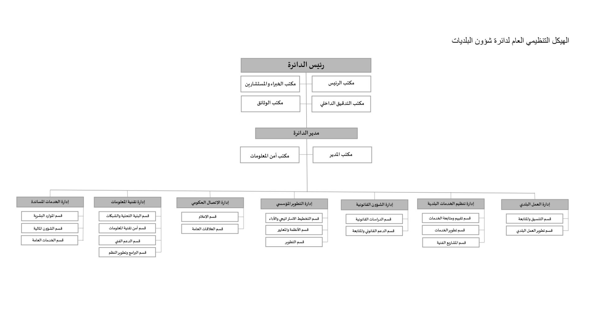 وبحسب المرسوم يُعتمد الهيكل التنظيمي العام لدائرة شؤون البلديات، ويُصدر المجلس التنفيذي بقراراتٍ منه ما يلي: