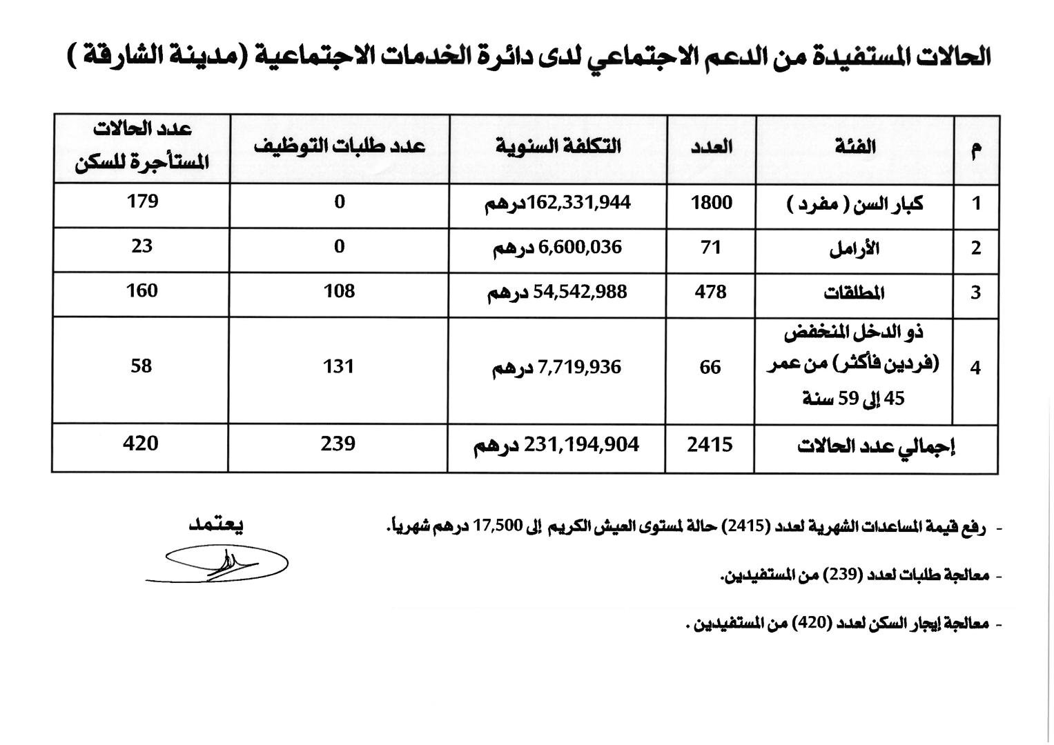 حاكم الشارقة يعتمد معالجة الحالات المستفيدة من الدعم الاجتماعي لدى دائرة الخدمات الاجتماعية بالإمارة