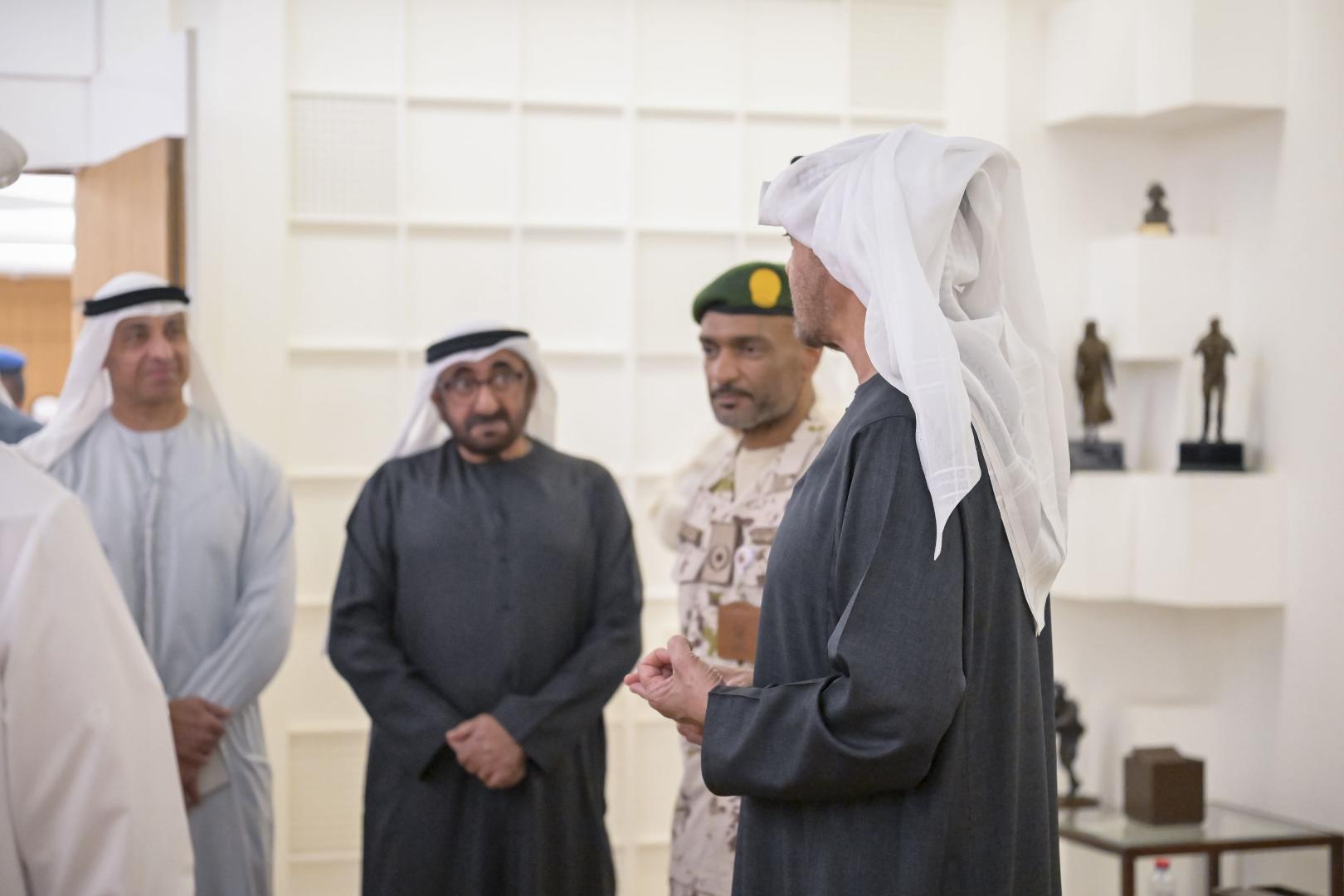 رافق صاحب السمو رئيس الدولة خلال الزيارة كل من..سمو الشيخ حمدان بن محمد بن راشد آل مكتوم، ولي عهد دبي نائب رئيس مجلس الوزارء، وزير الدفاع، وسمو الشيخ هزاع بن زايد آل نهيان، ممثل الحاكم في منطقة العين، وسمو الشيخ ذياب بن محمد بن زايد آل نهيان، نائب رئيس ديوان الرئاسة للشؤون التنموية وأسر الشهداء، ومعالي محمد بن مبارك بن فاضل المزروعي، وزير الدولة لشؤون الدفاع، ومعالي الفريق الركن إبراهيم ناصر العلوي وكيل وزارة الدفاع، ومعالي حمد محمد ثاني الرميثي مستشار الشؤون العسكرية لرئيس الدولة، ومعالي خلدون خليفة المبارك رئيس جهاز الشؤون التنفيذية، ومعالي فيصل عبد العزيز البناي مستشار رئيس الدولة لشؤون الأبحاث الإستراتيجية والتكنولوجيا المتقدمة وعدد من كبار ضباط وزارة الدفاع.
