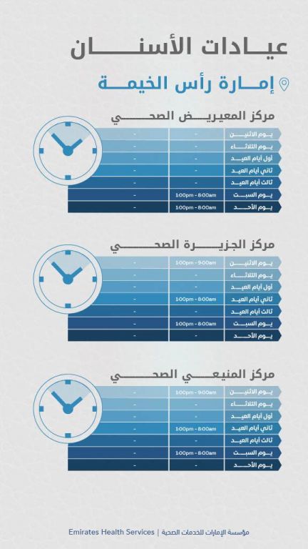 مؤسسة الإمارات للخدمات الصحية تعلن استمرار عمل أقسام الطوارئ في جميع المستشفيات التابعة لها على مدار الساعة خلال عطلة عيد الفطر المبارك، وتوضح ساعات عمل المنشآت الصحية خلال إجازة العيد.