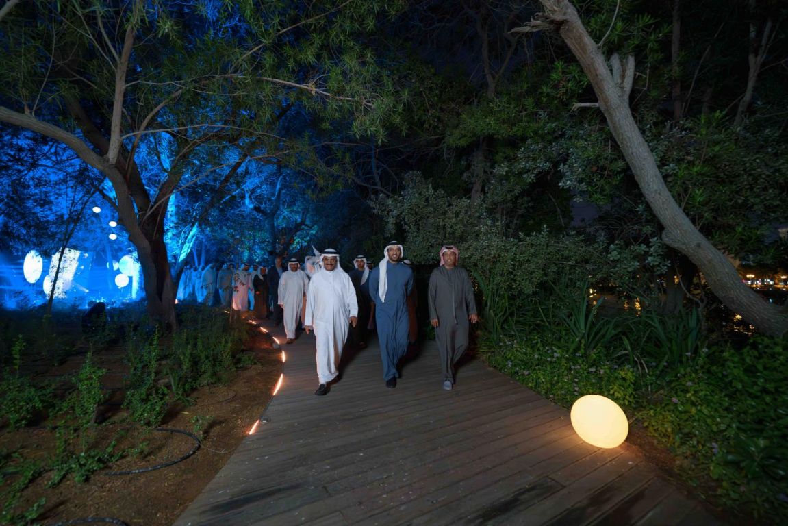 وتجول سمو نائب حاكم الشارقة في جزيرة النور مطلعاً على محطات العرض التي تعبر من خلال عروضها الفنية عن دلالات ومعاني هوية الشارقة الجديدة التي استنبطت من تاريخ الشارقة الغني وما تتميز به في مجالاتها الفنية والمعمارية والثقافية وغيرها، ومضيها نحو المستقبل بفكر استباقي مبني على العلم والمعرفة والتكنولوجيا مع تعزيز تماسك المجتمع.