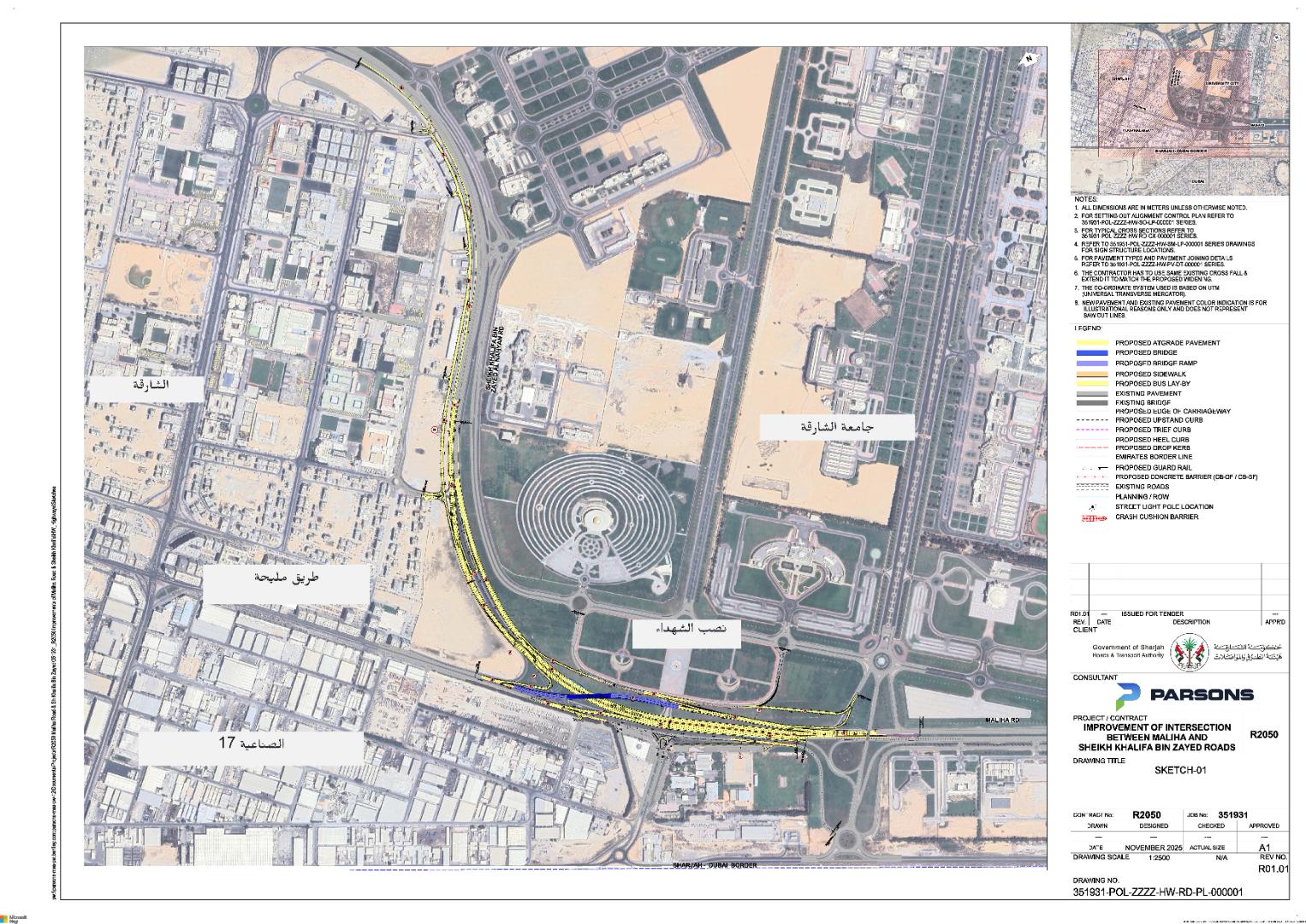 مخطط إنشاء جسر على شارع مليحة و المتقاطع مع شارع الشيخ خليفة