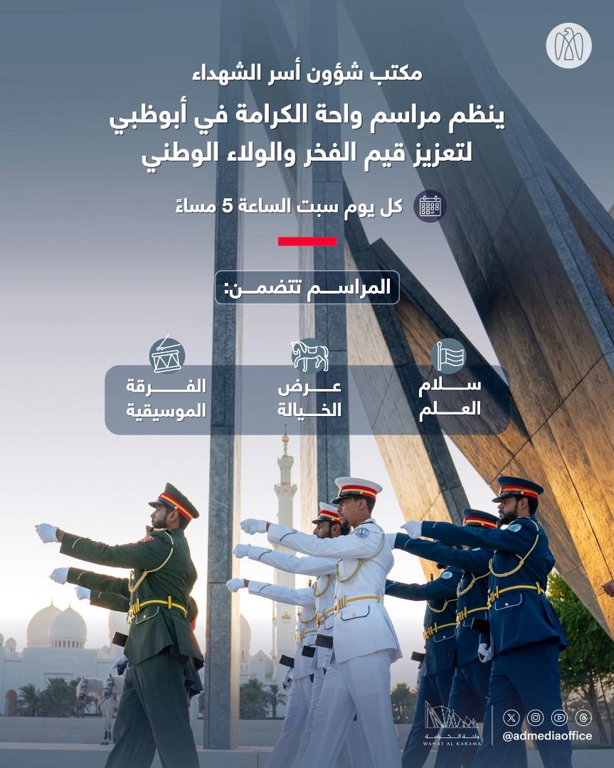 مكتب شؤون أسر الشهداء ينظم مراسم واحة الكرامة في أبوظبي كل يوم سبت ابتداءً من 4 إبريل 2026