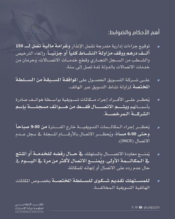 وزارة الاقتصاد وهيئة تنظيم قطاع الاتصالات والحكومة الرقمية تعلنان عن صدور قرار بشأن ضوابط وآليات تنظيم التسويق عبر المكالمات الهاتفية